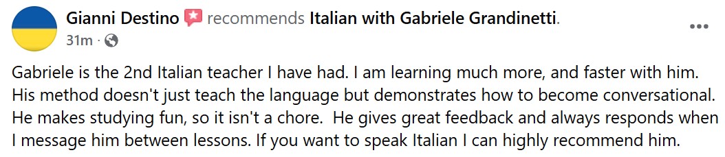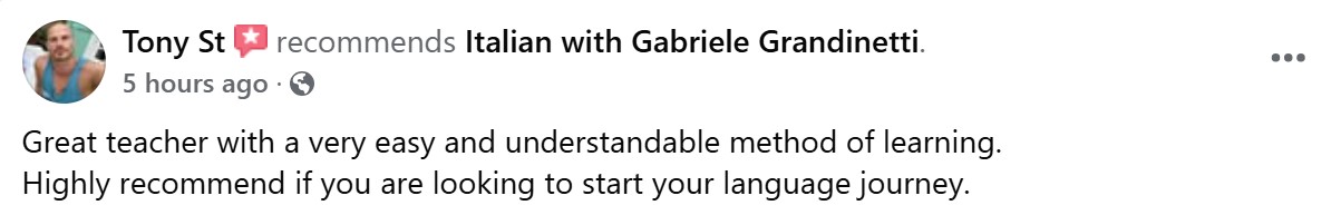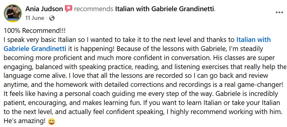In this FREE training Gabriele reveals the same methods foreigners can use to make their Italian experience truly memorable by connecting with people on a level that very few learners of Italian ever achieve without his help. Everything taught in this training will help you improve your Italian RIGHT NOW!